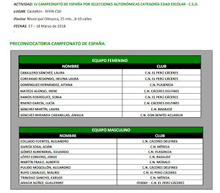 Alberto, que forma parte de los 17 preseleccionados, 8 chicas y 9 chicos que se han desplazado a Castellón,  fue convocado para la concentración alevín-benjamín, en el Centro de Tecnificación de Cáceres, a principios de este mes de febrero