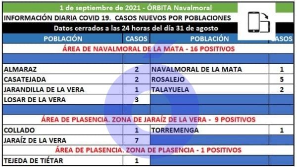 La zona de Salud de Jaraíz de la Vera, perteneciente al área de Salud de Plasencia, ha notificado 9 casos positivos en, Collado (1), Jaraíz de la Vera (7) y Torremenga (1).