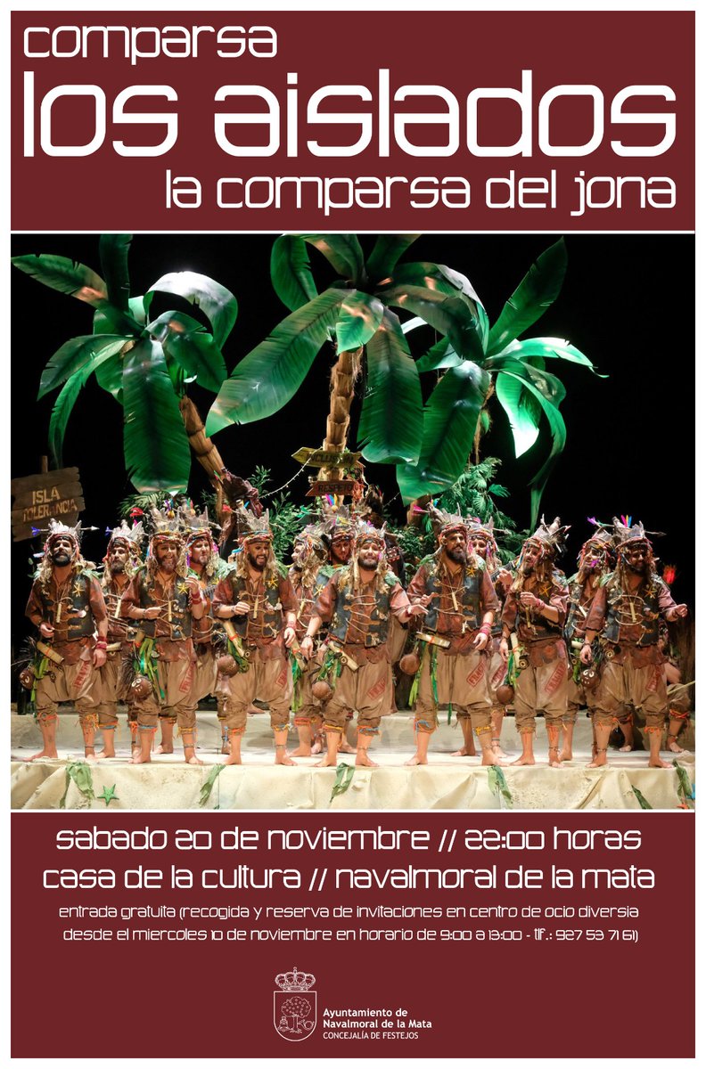 La Casa de Cultura acogerá el próximo sábado, 2o de noviembre a las 22:00 horas, organizada por la Concejalía de Festejos del Ayuntamiento moralo, una actuación dedicada especialmente a los amantes de Carnavalmoral, que podrán disfrutar con el ritmo gaditano de la comparsa Los Aislados, la comparsa del Jona.
